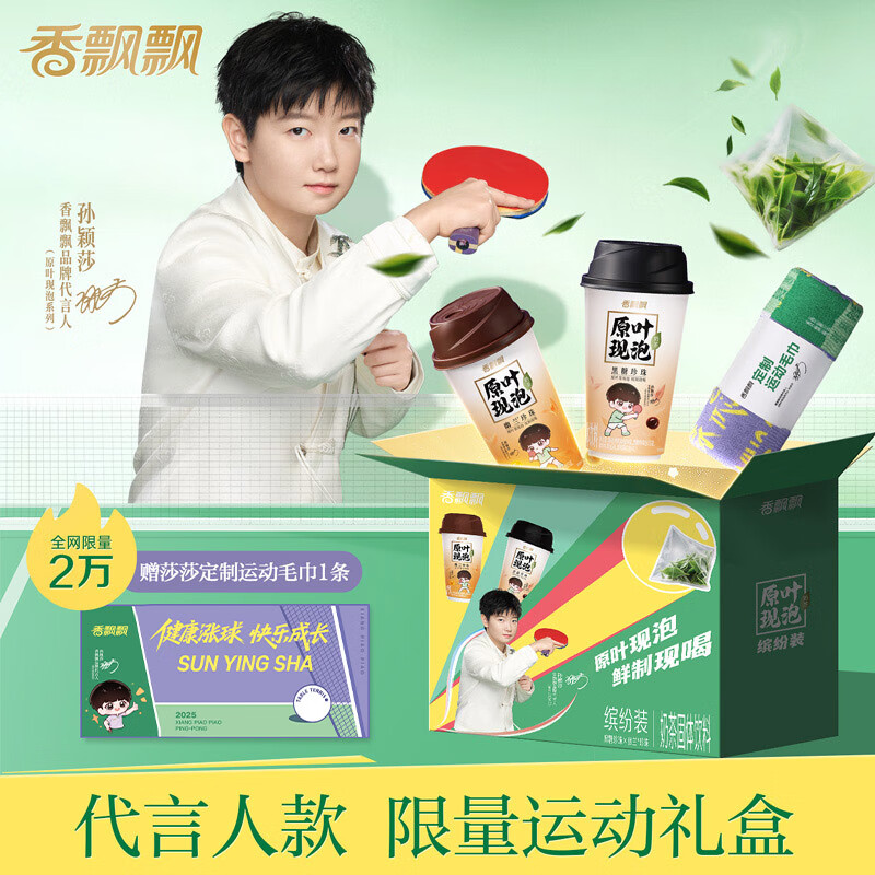 包邮 香飘飘【赠孙颖莎定制周边】原叶现泡珍珠奶茶缤纷装58g*18杯运动礼盒